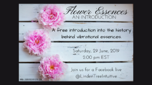 Join us for a free introductory workshop on Flower Essences.  Livestreamed on Facebook @LindenTreeIntuitive, with a Q&A session, plus a chance to win some freebies, and sign up for two more workshops (Choosing & Blending your Flower Essence and Creating a Mother Essence).